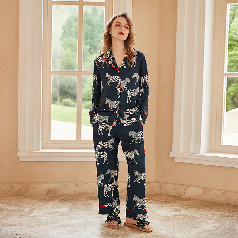 Navy Tiger & Floral Silk Shorts Pajama Set